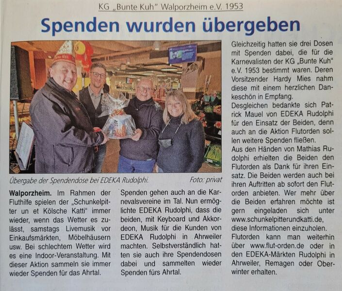 Die Kölsche Katti und der Schunkelpitter brachten wieder Spenden ins Ahrtal