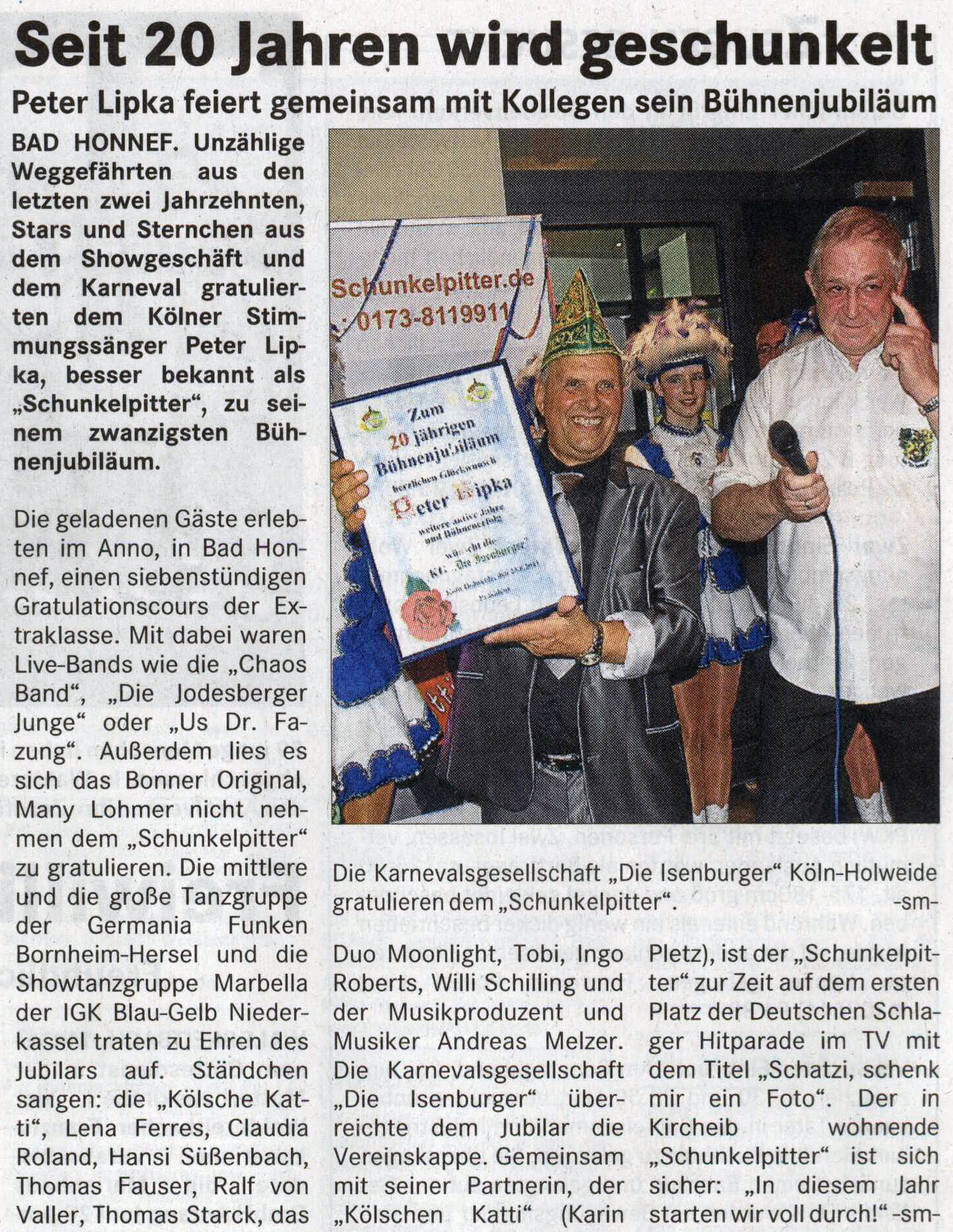 Mit seiner musikalischen Partnerin, der "Kölschen Katti", begeht Peter Lipka sein 20-jähriges Bühnenjubiläum